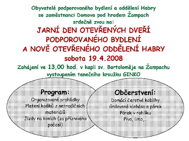 04.04.2009 JARNÍ JARMARK V DOMOVU POD HRADEM ŽAMPACH se uskutečnil dne 4. dubna 2009 s doprovodným kulturním programem v zámecké kapli. Z fotodokumentace akce: TISKOVÁ ZPRÁVA - ZDE [více...]