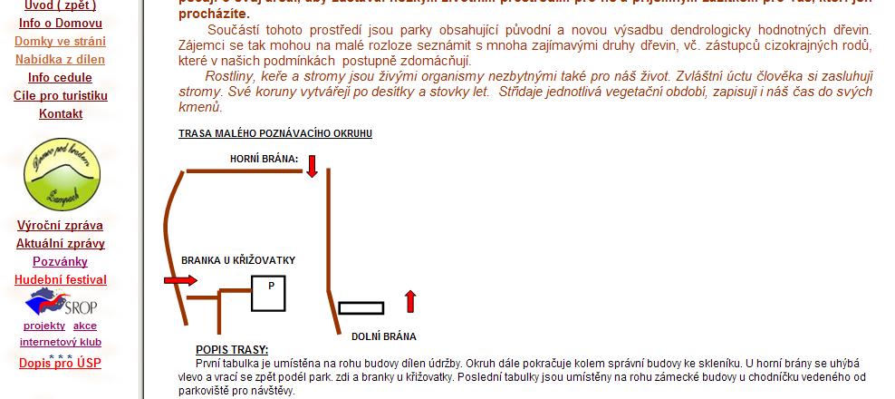 Dále bychom rádi informovali zájemce z řad veřejnosti o existenci malého poznávacího okruhu v zámeckém areálu Domova pod hradem na Žampachu. Okruh je zaměřen na poznávání stromů našich parků a zahrad.