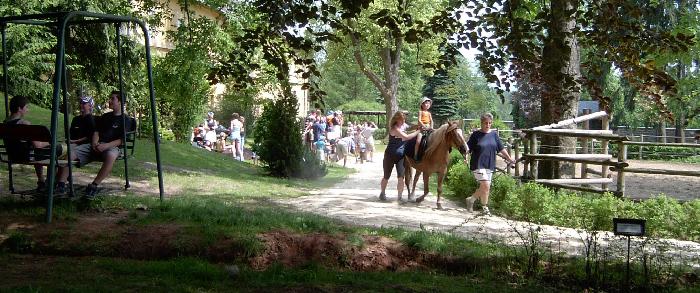 Proto se naši obyvatelé stále více účastní činností a akcí konaných mimo ústav. Současně také co nejsrdečněji zveme veřejnost k návštěvám akcí pořádaných u nás v prostředí zámeckém areálu na Žampachu. Pozvánky. Nabídka zájmových činností akcí našeho Domova je široká, například v průběhu kalendářního roku se naši obyvatelé účastní v průměru sedmdesáti různých akcí, včetně akcí pobytového charakteru. Přehled akcí naleznete v naší výroční zprávě v části „Využití volného času – zájmová a kulturní činnost“. Na dalším místě našich internetových stránek Vám chceme nabídnou informace o několika hlavních akcích, které tradičně pořádáme a na které bychom vás touto formou také chtěli co nejsrdečněji pozvat. V minulých letech navštívili při těchto akcích naše zařízení tisíce návštěvníků a většina přichází opakovaně. Věříme, že i pro Vás se stane náš zámecký areál vyhledávaným místem pro individuální i rodinné výlety, ať už za odpočinkem, zábavou nebo kulturou. Jednou z oblastí zájmové činnosti našich obyvatel je sportovní činnost. Za tímto účelem je v Domovu pod hradem Žampach založen Sportovní klub Radost Žampach, který je registrovaným členem Českého hnutí speciálních olympiád (ČHSO). V rámci tohoto hnutí mají sportovci našeho klubu možnost pravidelného tréninku a účasti v systému speciálně olympijských letních a zimních soutěží a her v tuzemsku i v zahraničí. Na základě mnohaleté pořadatelské zkušenosti byl Domov pod hradem Žampach pověřen prezidiem ČHSO pořádat Národní turnaj Českého hnutí speciálních olympiád v přehazované ve známém sportovním areálu TJ Dřevěnice u Jičína. Více informací k tomuto turnaji naleznete v samostatné části našich stránek. Navíc SK Radost Žampach pořadatelsky zajišťuje tento turnaj také v průběhu národních Letních speciálních olympiád. V roce 2007 se olympiáda uskuteční na počátku července ve Zlíně. Některé akce pořádá Domov pod hradem díky spolupráci a pomoci partnerských organizací, firem i jednotlivců. Bez této pomoci by nebylo možné akce realizovat. Domov pod hradem Žampach proto hledá další dobrovolníky, kteří by osobní pomocí nebo věcnou či finanční podporou přispívali k zajišťování akcí. Více k tomu. Děkujeme Vám a těšíme se s Vámi na shledanou na našich akcích ! Přejít na základní údaje o realizovaných projektech EU - zde - více informací