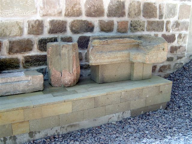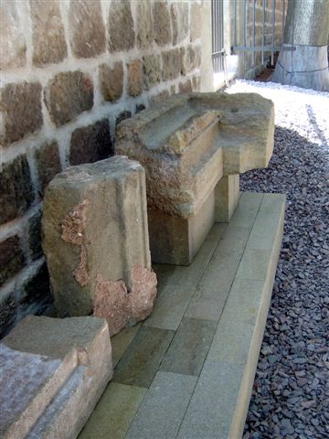 Architektonické články (segmenty) umístěné v expozici lapidária:
