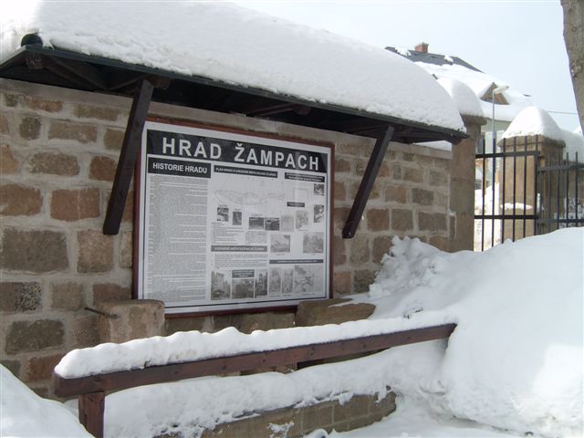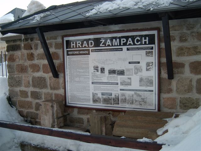 Lapidárium je expozicí nálezů objevených při archeologickém průzkumu na hradu Žampach se základními informacemi o historii tohoto hradu. Obsahuje materiály z dokumentace víceletých archeologických a průzkumných prací na hradu Žampach - Východočeského muzea Pardubice - archeolog - Mgr.Cejpová Miroslava. V této veřejně přístupné expozici si můžete prohlédnout např. fotodokumentaci prací, plán hradu s popisem jednotlivých částí a určením místa jednotlivých archeologických nálezů, které jsou zde vystaveny. Dále kopie unikátních historických materiálů – kresby a obrázky dokumentující např. stav zříceniny hradu kolem r.1880, dřevěnou rozhlednu na hradu v r. 1902 a v r. 1939. Opravy dřevěné lávky na hradu v r. 1940 a další.
