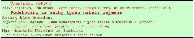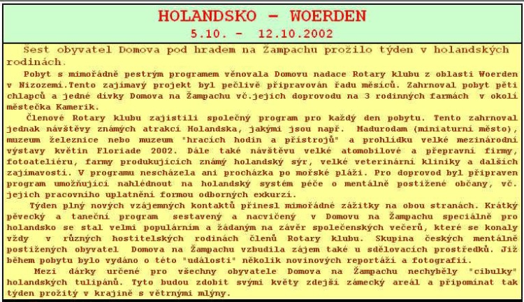 | Akce - dokumentace - pobytové akce - zahraniční pobyt Woerden Holandsko 2002 | |
