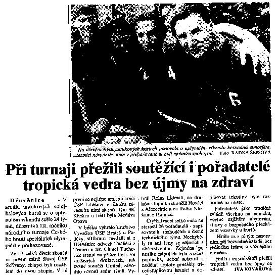 | Archiv - články, výstřižky novinové - Přehazovaná, Dřevěnice | |