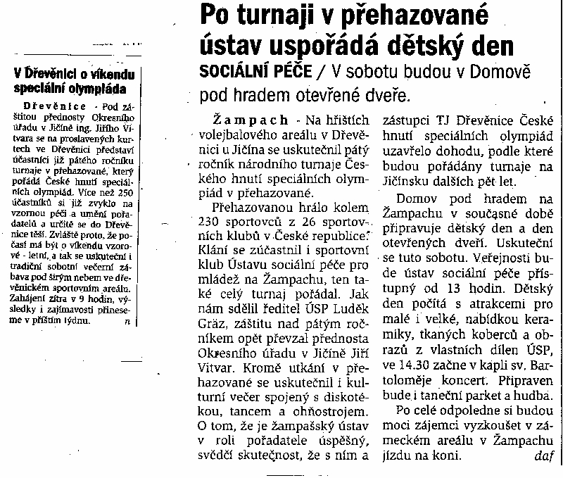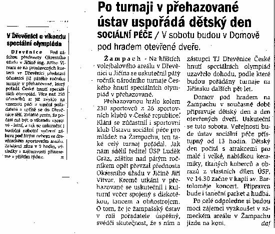 Zpět na hlavní článek k akci Více :: Archiv – články, výstřižky novinové :: Rok 2018 Rok 2017 Rok 2014 článek na www deníku - zde Rok 2013 zpráva na www deníku - zde Rok 2010 Rok 2009 článek na www - deníku - zde Jičínský deník Rok 2007 Rok 2003: Rok 2000: