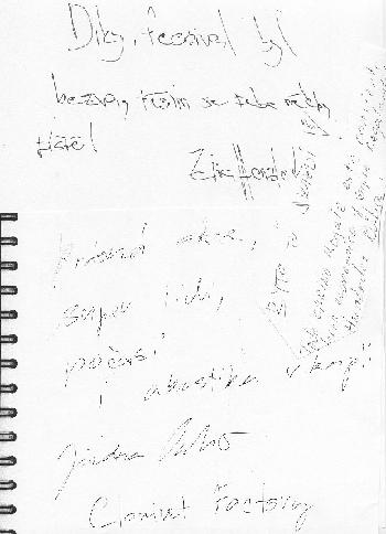 .....ještě jednou díky, že sme si mohli na vašem festivalu zahrát, byl to pro nás opravdu nezapomenutelný zážitek, na který budeme všichni rádi vzpomínat :-) Do Olomouce jsme dorazili v pořádku a doufám se opět setkáme, třeba i bez festivalu. Tam u vás je hrozně krásná krajina, tak tam rád vyjedu i na výlet. Měj se moc hezky, ať se Ti daří! Pozdravuj všechny od Frgálu