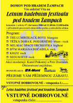 První ročník festivalu 2004 sobota 17. července 2004 ♫ THE LUMBERJACKBOYS bluegras ♫ ♫ TĚŽKÁDOBA KARLA POKORNÉHO blues-rock ♫ ♫ Melmac Space Orchestrabigbeat ♫ ♫ DÝM MARIJÁNA DOČADILA rock ♫ ♫ KRIZE rock ♫ ♫ SEDUM RYB rock ♫