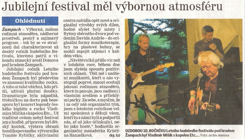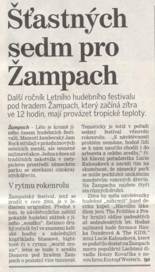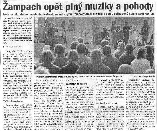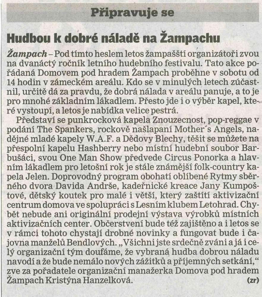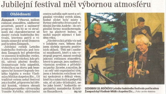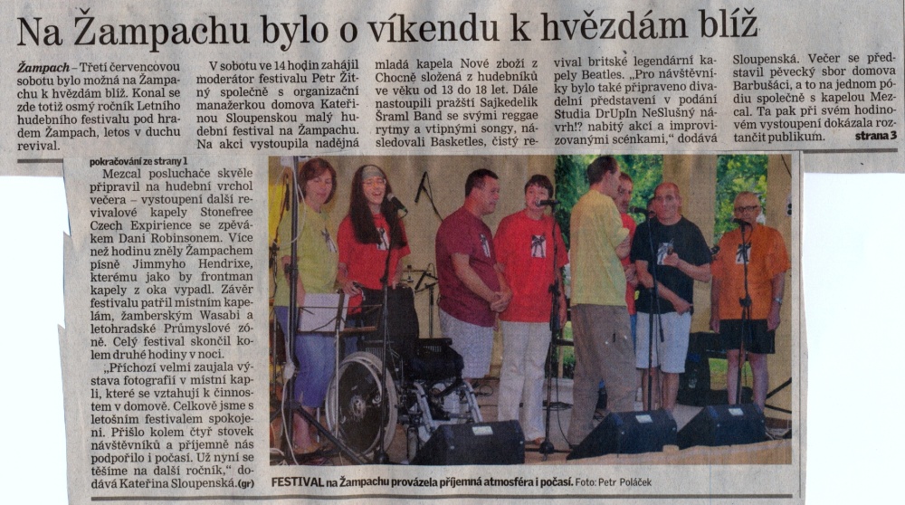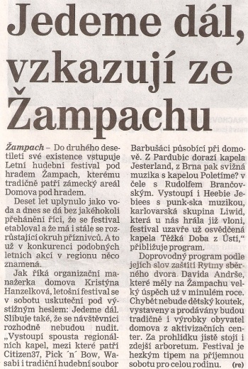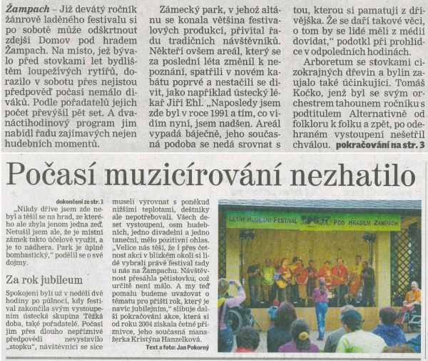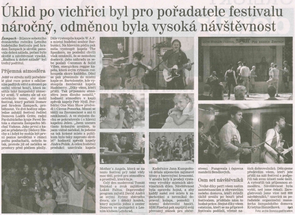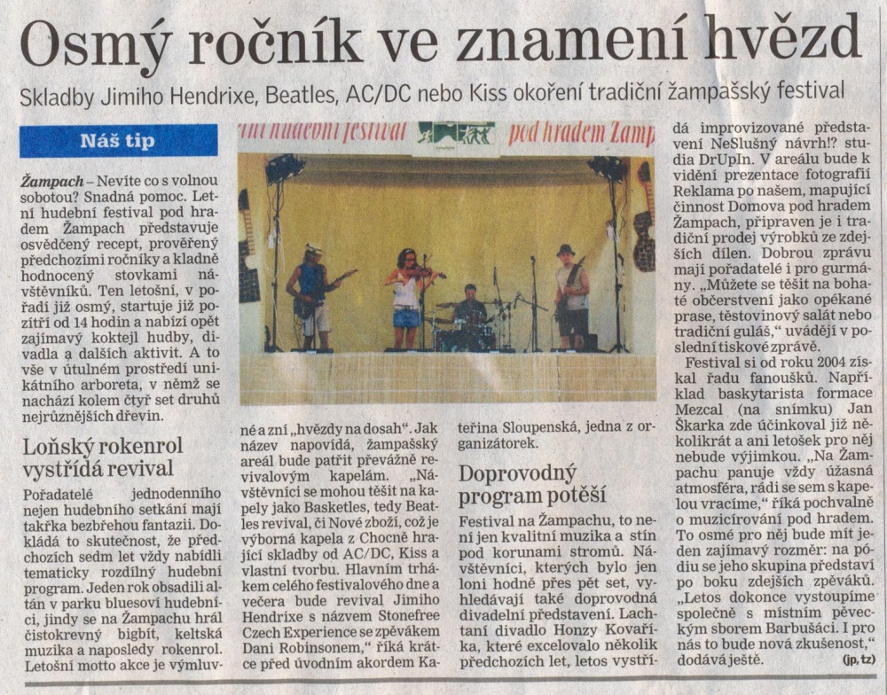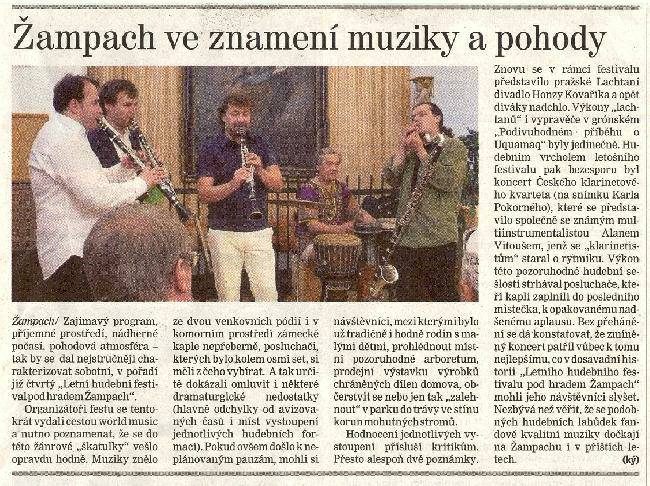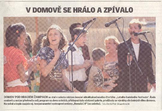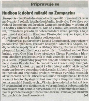 | Archiv - články, výstřižky novinové - Letní hudební festival pod hradem Žampach | |