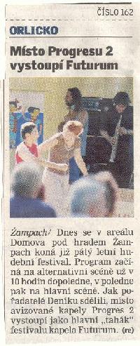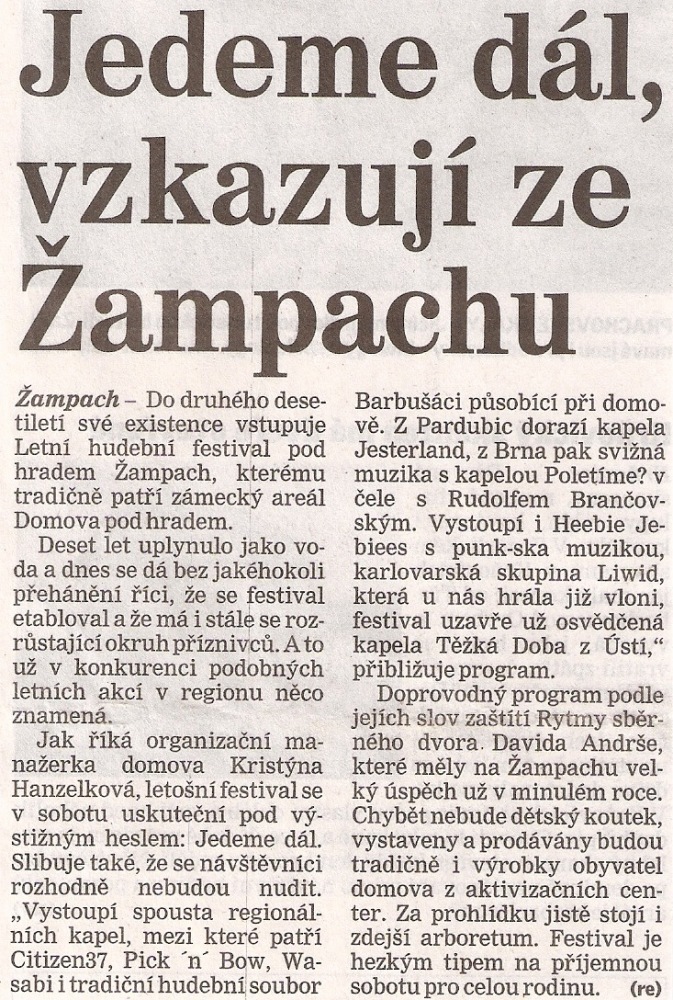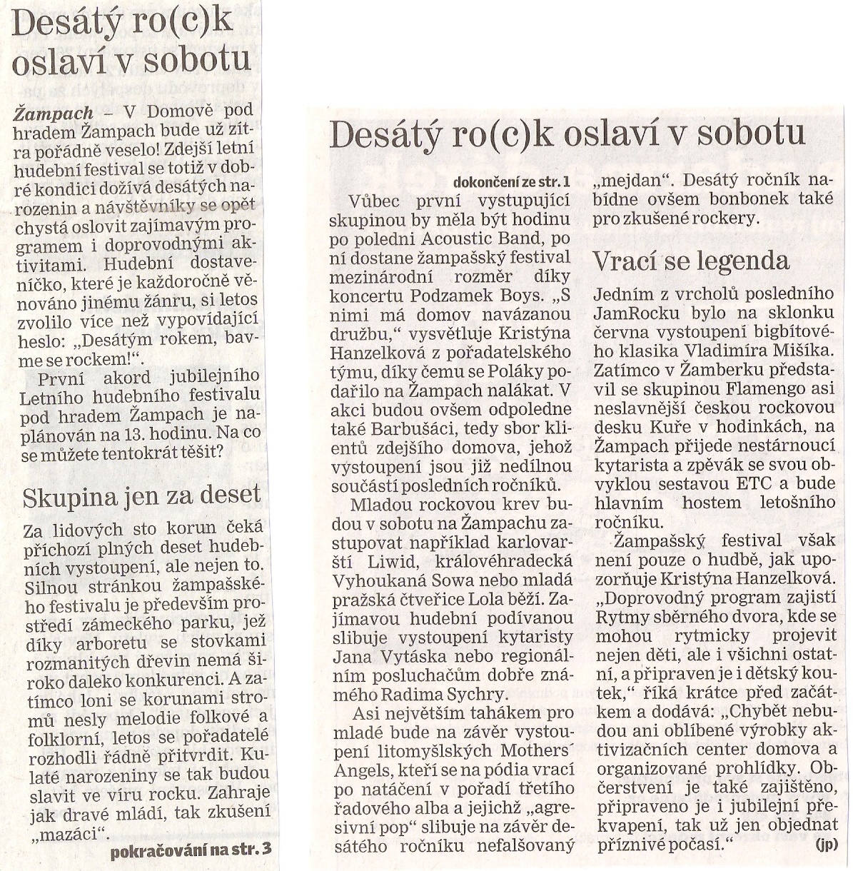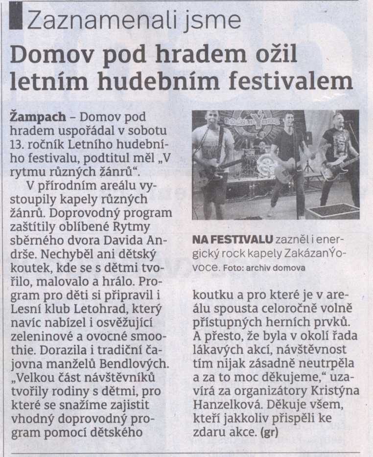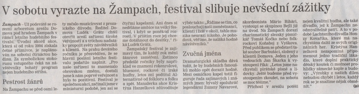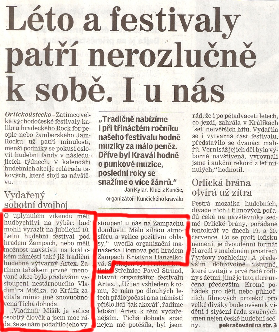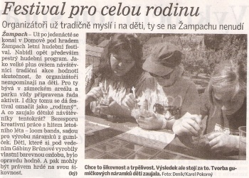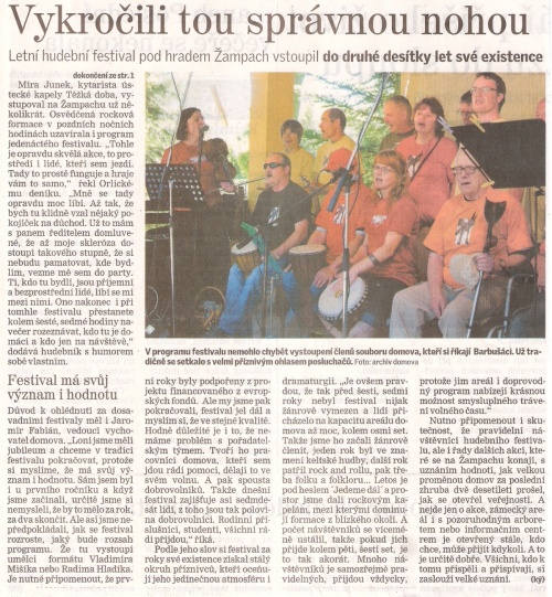 | Archiv - články, výstřižky novinové - Letní hudební festival pod hradem Žampach | |