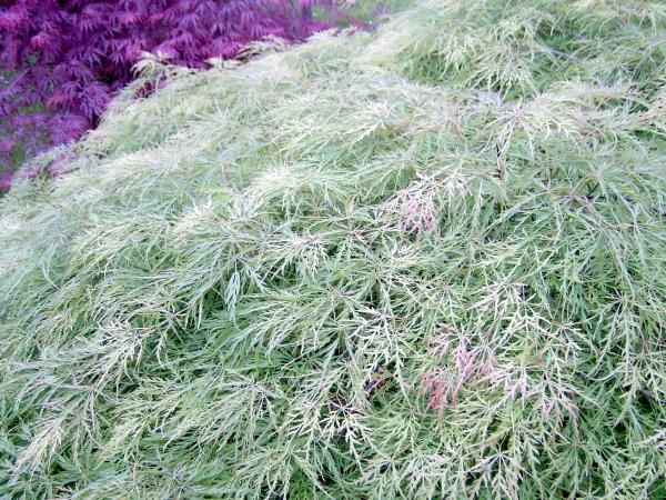 Hlavní skupina okrasných javorů je původem v Japonsku, střední Číně a Koreji. Mezi nejkrásnější patří kultivar javoru japonského -Acer japonica´Aureum´ /1/. Tento se vyznačuje zlatožlutými, okrouhlými, dvakrát pilovitými listy, složenými ze 7-11 laloků. Velmi podobným kultivarem je javor shirasawnův – Acer shirasawanum ´Aureum´ /2/. Javor dlanitolistý - Acer palmatum ´Atropurpureum´ /3/ je velmi pomalu rostoucí, s celoročně krásně červeně zbarvenými listy, někdy až k bázi rozeklanými v 5-9 laloků. Rostliny velké 3-4 m jsou v našich podmínkách cennýmiexempláři. V arboretu naleznete krásný stromek převyšující 4 m, jehož stáří je odhadováno na více než 80 let. A. palmatum ´Dissectum´ /4/ je ještě pomaleji rostoucí zakrslý kultivar s listy peřenoklanými, jemněaž k bázi dělenými.Vyšlechtěn byl již v r. 1784. Vzácně lze spatřit exempláře vysoké 1,5 m. V našem arboretu naleznete skupinku těchto nevšedních stromků před skleníkem. Své uplatnění nalézá tento kultivar též v kultuře bonsai. Zvláštním laločnatým tvarem listu nás zaujme také kultivar vyšlechtěný z domácího javoru mléče (Acer platanoides), a to - ´Dissectum´ /5/. Krásné jsou pestrolisté odrůdy poměrně často vysazovaného javoru jasanolistého (Acer negundo), např. ´Flamingo´ /6/ (bíle panašovaný list zpočátku s narůžovělým odstínem a ´Odessanum´/7/ (s listem zlatě až bronzově žlutým). Dominantou zámeckého nádvoří je již vzrostlý exemplář okrasného kultivaru javoru stříbrného - Acer saccharinum ´Wieri´ /8/, jehož ozdobou jsou hlouběji vykrajované listy a delší převisající větve, často je řazen mezi nejkrásnější stříhanolisté odrůdy javoru. Ozdobná pestrolistá odrůdabyla vyšlechtěna také z našeho domácího javoru babyky - Acer campestre ´Variegatum´ /9/. Javor pennsylvánský (Acer pennsylvanicum) /10/, původem z východuSeverní Amerikyje ozdobný nejen svým zvláštním mělce tří až pětilaločným listem, krásným zejména v době rašení, ale i podélně šedobíle pruhovanou borkou kmene. Tato výrazná kresba však vyniká až na starších stromcích, které jen velmi pomalu dorůstají výšky cca 7-9 m. Ojedinělý (z botanického hlediska spíše zajímavý) tvar listu má další odrůda javoru mléče - Acer platanoides ´Cucullatum´- zvaná „drápolistá“ /11/. Listy mají tvar vějíře s drápovitými laloky, které jim dávají poněkud zvláštní až deformovaný vzhled. V arboretu roste také jeden již dospělý strom tohoto zvláštního kultivaru. Naopak vysoce dekorativním dojmem působí A. platanoides ´Drummondii´ /12/, jehož listy jsou nápadné zpočátku krémově žlutým a později bílým širokým lemováním při okrajích a A. platanoides ´Crimson King´ /13/ s listem temně červeným, a to od vyrašení až do opadu. Také javor klen (Acer pseudoplatanus) má své okrasné kultivary, z nichž je možné si v arboretu prohlédnout např. A. pseudoplatanus ´Leopoldii´ /14/ (v arboretu rovněž jako statný strom) se zajímavě panašovanými listy (na listech jsou náhodně rozmístěny skvrny různé velikosti, tvarů a množství, takže vypadají jako by byly postříkány bílou a nebo žlutavou barvou) a A. pseudoplatanus ´Brillantissimum´, /15/který je menšího vzrůstu s listy zpočátku růžově a bíle zbarvenými. Ze severoamerických javorů nás zaujme též javor červený (Acer rubrum) /16/. V březnu (před vyrašením listů) se objevují jeho červeně zbarvené květy. Mimořádně krásný je pak tento strom na podzim, kdy se jeho drobné 3-5 laločné listy nádherně šarlatově červeně vybarvují. List tohoto druhu javoru je na kanadském státním znaku. Neobvyklým druhem javoru je javor habrolistý (Acer carpinifolium) /17/, jehož listy silně připomínají listy habrů. Pokud bychom chtěli tento stromek spatřit ve volné přírodě, je třeba procházet opadavými lesy poblíž horských potoků Japonska. V arboretu na Žampachu naleznete mnoho dalších druhů javorů, které pomalu dorůstají v zajímavé exempláře. Dále o rodu JAVOR (ACER) - informace na stanovišti č. 5 Dále o rodu JAVOR (ACER) - informace na stanovišti č. 5 [Více fotografií - fotogalerie arboretum]