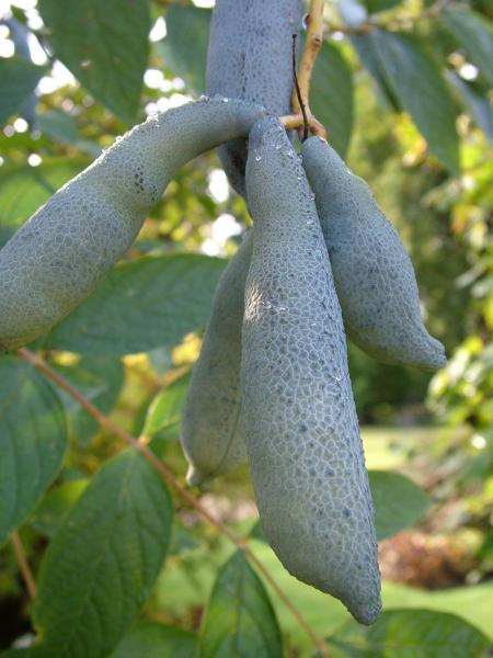 TAB. 4a [jpg] 1,5 MB TAB. 4a [pdf] 1,5 MB DEKAISNEA (DECAISNEA) Čeleď: Kokylovité (Lardizabalaceae) Rostliny z čeledi kokylovitých (Lardizabalaceae). Rod zahrnuje pouze dva druhy původně rozšířené v Himálaji a západní Číně. U nás je vzácně zastoupena dekaisnea Fargesova (Decaisnea fargesii). Je to vzpřímeně rostoucí, prutnatý keř, dorůstající výšky 3 až 5 m. Kmínky má silné, vzpřímené, málo rozvětvené, s lysými, modře ojíněnými letorosty. Listy lichozpeřené, dlouhé 50 až 80 cm. Květy jsou zvonkovité, zelenavé, uspořádané v převislých koncových latách 25 až 50 cm dlouhých. Mimořádně zajímavé jsou její plody - válcovité zakřivené tlustostěnné měchýřky vzhledem připomínající fazolové lusky (5 až 10 cm dlouhé a 2 cm silné). Svrchu jsou švestkově modře zbarvené a ojíněné. Obsahují množství drobných černých semen obklopených bělavou poživatelnou dužninou.