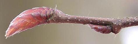 Harbr obecný - Carpinus betulus, detail vrcholového pupenu |