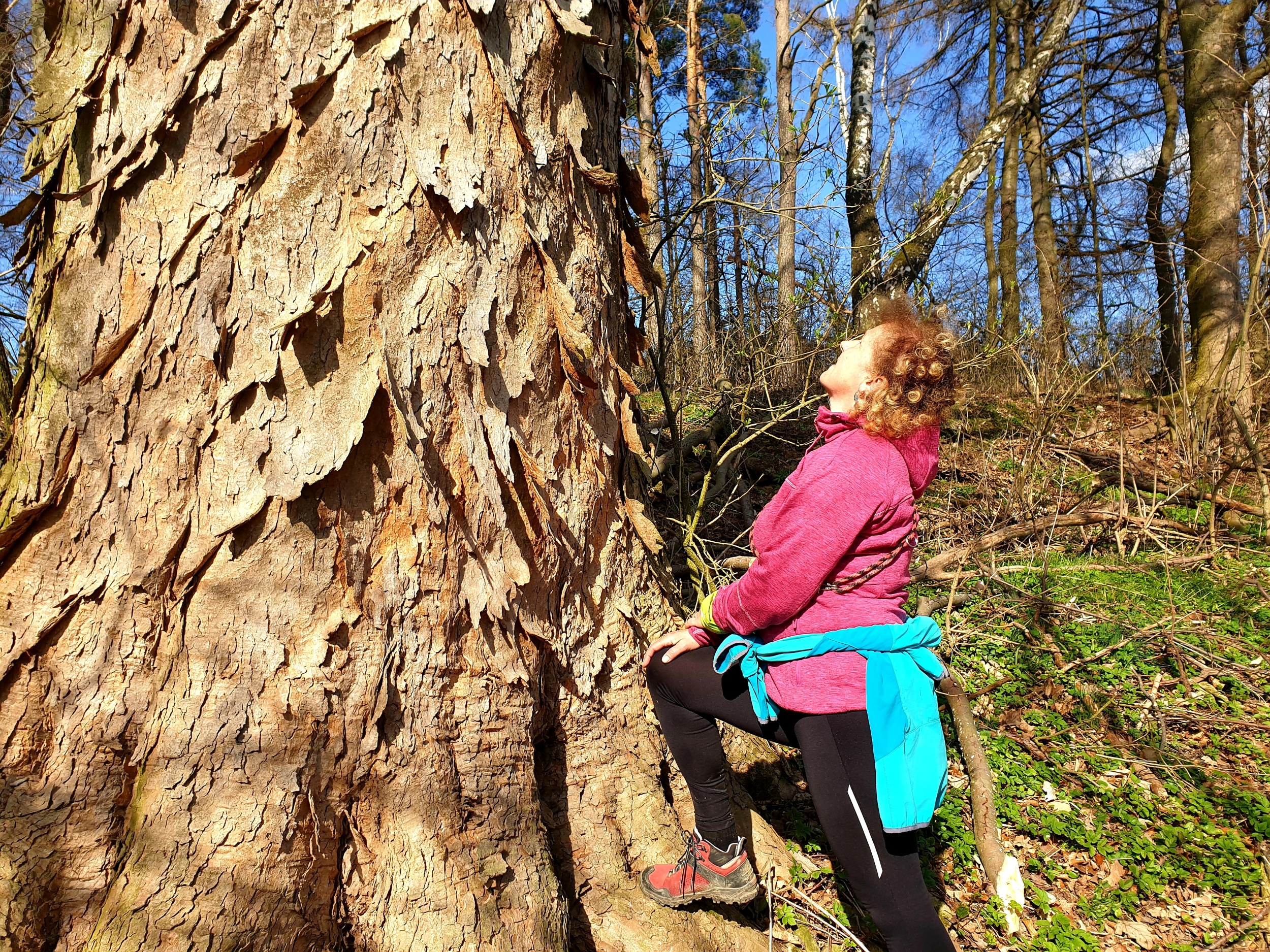 javor klen (Acer pseudoplatanus) objeven v r. 2021 v přírodní lokalitě (blízko Ústí nad Orlicí) s krásnou texturou borky na mohutném kmeni |