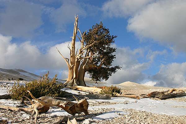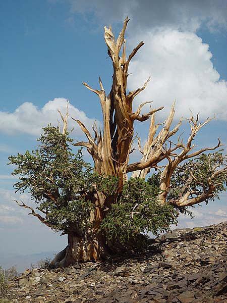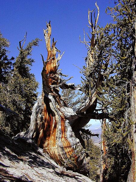 Borovice osinatá (Pinus aristata) pochází ze západní části Severní Ameriky, kde tvoří horní hranici lesa v suchých pohořích. Mezi 5-ti jehlicovými borovicemi nalezneme jednak dřeviny rychle rostoucí jako například borovice vejmutovka, jejím opakem je zde právě tato borovice osinatá, rostoucí velmi pomalu. Dřeviny pomalu rostoucí zpravidla dosahují vysokého věku. Mezi rekordmany naší planety patří borovice osinatá. Odborným měřením exemplářů objevených (v r. 1945) vysoko v pohoří Kalifornie (White Mountains) v nadmořskévýšce 1700 – 3400 m bylo odhadnuto stáří u tří jedinců na více než 4700 let (tedy vyšší než u sekvojců, které byly do té doby považovány za nejstarší stromy). Viz. celosvětová databáze "starověkých stromů" (databáze OLDLIST). Výška těchto stromů je jen 4,5 – 9 m s průměrem kmene 125 cm. Tyto nejstarší dosud žijící stromy naší planety působí poněkud „zmrzačeným“ dojmem. Za své neuvěřitelné stáří vděčí patrně skutečnosti, že na svém stanovišti v Sieře Nevadě tráví podstatnou část roku v podmrazeném stavu za mimořádně nízkých teplot. Tato borovice v našich podmínkách představuje spíše kuriózní,pomalu rostoucí dřevinu (zdejší exempláře byly vysazeny jako cca 5-leté v r.1992). Habitus má tato borovice v dospělosti nepravidelně uspořádaný, řídký, s větvemi hadovitého charakteru. Typickým znakem jsou krátké jehlice 2-5 cm (ve svazcích po 5). Jsou olepené bílými zrnky pryskyřice a na větvičce hustě nahloučené a těsně přitisklé tak, že se podobají liščímu ocasu nebo kartáči na čištění lahví. Šištice (4 x 9 cm), též velmi olepené zrnky pryskyřice, mají jemný cca 8 mm dlouhý osten. Tento zcela mrazuvzdorný druh roste dobře i na mělkých, kamenitých, sušších půdách. Na několika fotografiích si můžete prohlédnou nejstarší stromy naší planety v jejich domovině. __________________________________ Smolnaté dřevo borovic voní pryskyřicí a liší se v jakosti dle druhů. Používá se v nábytkářském průmyslu, zejména k výrobě šatníků, neboť moli nesnášejí vůni borovice. Již starověcí mistři tesaři znali zpracování borového dřeva. Pro využití ve stavebnictví se vybíraly stromy rostoucí na suchých stanovištích a kácely se v prosinci, protože v té době je dřevní hmota téměř dvojnásobně hutnější než v kterémkoli jiném ročním období.Snad díky své skromnosti, vytrvalosti a síle dostala borovice přídomek “matka moudrosti”, jež zcela vystihuje její podstatu. Germáni lemovali borovicemi pohřebiště, poradní místa,apod. Tyto stromy byly pro ně vzhledem ke své síle symbolem dlouhého života a vytrvalosti. Jako všechny stálezelené jehličnaté stromy je i borovice považována za symbol věčného života. __________________________________ Šišky některých druhů borovic nás zaujmou svou velikostí a vzhledem. Například šišky severoamerické borovice Coulterovy (Pinus Coulteri) jsou vejčitého tvaru, dosahují velikosti až 35 cm a ukrývají semena velká více než 2 cm. Nejdelší šišku má pak borovice Lambertova (Pinus Lambertiana). V domovině je to strom vysoký až 100m s rozměry šišek válcovitého tvaru až 11x50 cm.