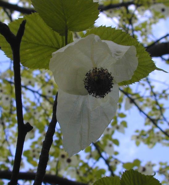 TAB. 7b [jpg] 1,5 MB TAB. 7b [pdf] 1,5 MB DAVÍDIE (DAVIDIA) Čeleď: tupelovité (Nyssaceae) Řád: dřínotvaré (Cornales) Davídie listenová (Davidia involucrata) je opadavý strom pocházející z vlhkých horských čínských lesů. Svým vzhledem připomíná lípu, u nás roste častěji jako vyšší keř. Dosahuje výšky 6 – 12 (20) m. Je dlouhověká. Jejíkoruna je široce vejčitá. Působí velmi exoticky, zejména v době květu. Střídavě postavené listy jsou široce vejčité (12 x 15 cm), hrubě pilovité, na bázi srdčité, s červenými řapíky, rub listu je šedavě plstnatý. Květy jsou oboupohlavné, složené z 2 cm nevýrazných kulovitých hlávek, podepřených 2 optickými lákadly - velmi výraznými, bílými nebo krémově bílými, nestejně velkými (8 až 16 cm) listeny. Kvetou v květnu až červnu s rašením listů. Květenství se vytváří až u starších rostlin. Plody jsou elipsoidní peckovice (3 až 4 cm), zpočátku zelené, později červenohnědé. V parcích našeho arboreta je kromě tohoto druhu zastoupena i jeho varieta D. i.´Vilmoriniana´, která má listy na rubu zcela lysé a řapíky listů zelené. Tato varieta je nazvána podle firmy Vilmorin ve Francii, vedle které první davídie v Evropě vykvetla. Je to krásný strom vhodný do větších rodinných zahrad i parků na exponovaná stanoviště, umožňující pohled do koruny v době květu. V našich podmínkách však vyžaduje teplejší stanoviště a dostatečně vlhkou, propustnou půdu. První davídie v Čechách byla vysazena v r. 1910 v Průhonicích, kde roste dodnes, o něco mladší je strom u rezidence USA v Praze 6 – Dejvicích.Z podoby květu je odvozen jiný český název pro tento strom: „kapesníkovník“.