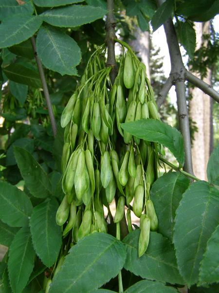 JASAN (FRAXINUS) Rod jasan je zastoupen asi 65 druhy rozšířenými v mírném a subtropickém pásmu severní polokoule. Je typickou složkou lužních společenstev. Daří se mu v hlubokých, vlhčích půdách s dostatkem vápníku. Jasany patří k největším evropským listnatým stromům, jsou rychle rostoucí a dosahují výšky až 45 m, jsou dlouhověké. Jejich koruna bývá mohutná, široce elipčitá. Kůru mají v mládí šedou, později hluboce rozbrázděnou. Jejich kůlový kořen je slabě vyvinut, zato postranní kořeny pronikají daleko a dosti hluboko. Vstřícně postavené opadavé listy jsou pozdě rašící, složené, lichozpeřené.Hranaté pupeny jsou přikryté 1 – 2 páry vnějších šupin hnědé až černé barvy. Květy jsou nenápadné, oboupohlavné nebo jednopohlavné, sestavené v latách či hroznech. Plody tvoří křídlaté nažky. Plodnost se dostavuje na volném prostranství zpravidla ve 20 až 25 letech. V parcích našeho arboreta je jasan zastoupen několika svými druhy. Roste zde i zástupce našich domácích druhů jasan ztepilý (Fraxinus excelsior) a jeho okrasné kultivary. Jasan ztepilý ( Fraxinus excelsior) je domácím, silně vzrůstným (až 40 m vysokým) stromem s široce elipčitou korunou, v mládí šedozelenou borkou a výrazně černými pupeny. Jeho listy jsou lichozpeřené, složené z 9 až 11 (15) lístků, velmi brzy opadávají. Kvete nenápadně, před rašením listů. V našem areálu se nacházítéž velmi krásný kultivar ´Pendula´ tvořící velkou korunu s dlouhými převislými větvemi a 2 exempláře význačného převislého kultivaru ´Heterophylla Pendula´.To je kultivarpro tento druh s nezvykle působícím, jednoduchým, ostře pilovitým listem. Zvláštní kompaktní kulovitou korunu má pomaleji rostoucí kultivar ´Jaspidea´, který je charakteristický a zejména v zimě snadno poznatelný podle silných žlutých větévek, nápadně kontrastujících s černými pupeny. Z ostatních jasanů se lze v našem areálu setkat např. s druhem pocházejícím z východní části Severní Ameriky, z bažinatých lokalit - s jasanem pensylvánským (Fraxinus pensylvanica), a to v mimořádně krásném kultivaru s listy žlutě skvrnitými ´Aucubifolia´. Jasan pensylvánský má narozdíl od jasanu ztepilého ochmýřené letorosty i rub listů a hnědé pupeny. Můžeme zde vidět jasan čtyřhranný (Fraxinus quandrangulata), 15 až 25 m vysoký severoamerický strom, který má ostře čtyřhranné letorosty a šedavé pupeny. Poněkud nápadnější bílé, vonné květy umístěné na koncích výhonů má jasan manový, zimnář (Fraxinus ornus), který je v našich parcích rovněž zastoupen. Je to jihoevropský menší strom dorůstající 8 m výšky, charakteristický svými šedými pupeny a menšími listy složenými ze 7 vejčitých lístků. V Itálii se tento strom pěstuje na plantážích pro získávání „many“ – gumovité hmoty s využitím v lékařství apod. Dřevo jasanů je světlé, tvrdé a těžké, velmi pružné, ohebné, pevné, nosné a středně trvanlivé. Je vyhledávaným dřevem nábytkovým, dýhovým a na sportovní nářadí, lyže, parkety, apod. Fraxinus je staré latinské jméno pro jasan, odvozené snad z řeckého Phrasso = oplocovat, z čehož vyplývá, že dřevo bylo používáno na ploty. Již Hippokrates doporučuje povařenou jasanovou kůru proti hadímu uštknutí a psímu kousnutí. Říká se, že kozy, které dostávají jasanové listí, nikdy neonemocní.