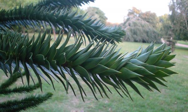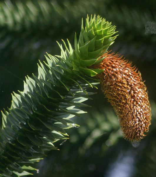 BLAHOČET (ARAUCARIA) Blahočetovité jsou v rámci ostatních jehličnatých samostatnou a izolovanou skupinou velkého fylogenetického stáří, otisky z křídového období jsou známy i z Evropy, teprve ve třetihorách byly zatlačeny na jižní polokouli. Klimatické podmínky evropských zahrad relativně nejlépe z cca 10 druhů snáší blahočet chilský (Araucaria araucana), který v domovině (Chile a JZ Argentina) vystupuje až do nadm.výšky 1600 m. Do Evropy dovezen v r.1795. Blahočet vytváří mohutné, ale štíhlé stálezelené jehličnaté stromy s pravidelně přeslenitými větvemi, které dodávají dřevině zajímavý exotický vzhled. Samičí jedinci jsou obvykle mnohem mohutnější než samčí, kdy samičí rostliny dosahují výšky 60, 70 i více m a tloušťky kmene více než 2,5 m., kdežto samci výšky pouze kolem 20 m. Během růstu se široce kuželovitý tvar koruny mění na deštníkový. Dosahují vysokého stáří až 2000 let. Listy jsou tuhé, kožovité, s ostrou špičkou, 25-50 mm dlouhé. Povrch mladých kmenů je hustě pokryt do všech stran trčícími kožovitými, pichlavými listy, na které se bojí usedat i ptáci. Tyto dvoudomé dřeviny mají samčí květy válcovité až 15 cm dlouhé, samičí kulovité až 20 cm, z nichž 2.rokem dozrávají 20 cm dlouhé a až 1,6 kg vážící šištice, které se ve zralosti rozpadají. Šištice obsahují až 4 cm dlouhá jedlá semena, velmi výživná a chutná, jež byla hlavním pokrmem jihoamerických indiánů kmene Araucos. Blahočet je v našich podmínkách málo otužilý a proto je třeba ho na zimu chránit. Mimořádně tuhá zima může způsobit zkázu i většího stromku, který je u nás vzácností. Exemplář v parcích arboreta Žampach, umístěný na chráněném stanovišti, by výšky 10 m mohl dosáhnout nejdříve za 60 let, ovšem pokud bude dostatečně otužilý vůči mimořádným zimám, které jej potkají.