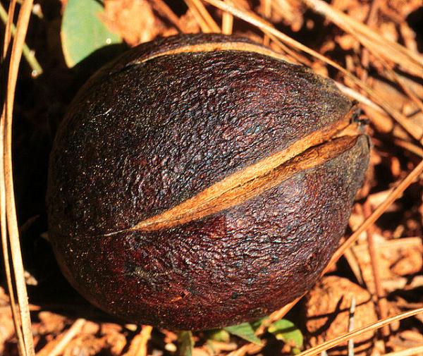 Ořechovec lysý (Carya glabra) je pomalu rostoucí strom s mělce a jemně rozpraskanou borkou. Jeho ořechy jsou hruškovitého tvaru s hladkou tenkou skořápkou bez žeber a s hořkým jádrem.