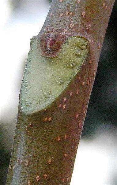 Letorosty (roční přírůstky větví, výhonky) jsou silné, chlupaté, poseté velkými listovými jizvami a četnými světlými lenticelami =„čočinky“ jsou to malé, bradavičnaté, tečkovité nebo čárkovité otvory v borce, sloužící k provzdušňování vnitřních vrstev kůry, od borky se většinou barevně odlišují ; obdobně výrazné lenticely si můžete prohlédnout např. u jerlínu a maackie.