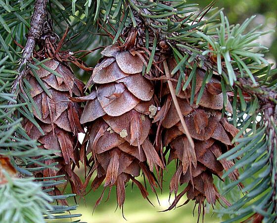 Čeleď: borovicovité (Pinaceae) Řád: jehličnatotvaré (Pinales) Asi 7 druhů rodu douglaska je rozšířeno v západní části Severní Ameriky (kde roste na pobřeží i v horách až do výšky 3000 m) a ve východní Asii. Douglasky mají rády živné, propustné, čerstvě vlhké půdy, nedaří se jim na podmáčených nebo příliš suchých půdách. Sucho však zvládají lépe než jedle a většina smrků. Je to polostinná dřevina, proto ani v přistínění dolní větve na rozdíl od smrků neopadávají. Nejčastějším zástupcem tohoto rodu u nás je douglaska tisolistá, Menziesova (Pseudotsuga menziesii, douglasii) rostoucí přirozeně zejména v pobřežních oblastech Severní Ameriky, stoupá však i do hor. Do Evropy ji dovezl r.1827 David Douglas. Tato douglaska vytváří statné, vždyzelené jehličnaté stromy s široce kuželovitou korunou a vodorovně odstávajícími hlavními větvemi. Svojí texturou je podobná smrkům nebo jedlím, odlišuje se však svou větší bujností, delšími a křehčími větvemi (odskakují při větru) a jemnými, řasnatě splývavými větvičkami. Dosahuje za příznivých podmínek výšky i přes 100 m a průměru kmene až 5 m, běžná její výška je však kolem 50 m. Její v mládí zelenošedá, hladká borka (s množstvím pryskyřičnatých puchýřků), se ve stáří mění v hluboce brázditou, korkovitou. Svým stářím až 700 let patří mezi dlouhověké dřeviny. Kořenový systém je mohutný, ne však příliš hluboký, riziko vývratů je menší než u smrků. Ploché, měkké a ohebné, svěže zelené jehlice (1,5-3 cm dlouhé), na rubu se 2 bělavými pruhy průduchů, přisedají na větvičku terčíkem a jsou zpravidla 2-řadě uspořádány. Na rozdíl od většiny smrků a jedlí jsou jemnější, po rozemnutí voní po citrusech. Rozdílné jsou i pupeny, které na rozdíl od zaoblených pupenů smrků a jedlí, jsou nápadně štíhlé, dlouze zašpičatělé (až 1 cm). Květy jednopohlavné, samčí šištice úžlabní, válcovité, samičí na konci krátkých větévek. Převislé a nerozpadavé šišky podlouhle vejčitého tvaru (7-10 cm dlouhé) jsou výrazné svými vyčnívajícími trojcípými podpůrnými šupinami (s nejdelším prostředním lalokem) k šišce přitisklými. Prvním rokem dozrávají, otevírají se a vypadávají z nich semena podobně jako u smrků. V parcích arboreta Žampach je douglaska tisolistá zastoupena také kultivarem ´Glauca Pendula´ s křivým, často nahnutým kmenem, výrazně převislými větvemi a modrozelenými jehlicemi, dorůstající do 10 m výšky. Nejvyšší objevená douglaska, když byla poražena, měřila 133 m a průměr kmenu u základu činil 4 m. Byla tak zřejmě nevyšším rostoucím stromem světa, neboť i nejvyšší dosud známá dřevina - sekvoje vždyzelená, měří „pouze“ 120 m. Mezi známými žijícími douglaskami vyniká 98,7 m vysoký exemplář rostoucí v Riderwoodu ve státě Washington. Také v našem arboretu je douglaska dosud nejvyšším stromem. Při pohledu do nesčetných přeslen koruny stromu možná pocítíte závrať z výšky (byť u našeho exempláře rostoucího v horním zámeckém parku se jedná o výšku „pouhých“ cca 45 m). Také na našem exempláři starém cca 150 let si můžete prohlédnout typický kmen douglasek tisolistých shrubě rozpukanou, brázditou, temně černohnědou borkou se světlejšími (oranžovými) trhlinami. Douglaska je hospodářsky nejdůležitější americká jehličnatá dřevina, její pevné dřevo s černým jádrem a zarůžovělou bělí je využíváno zejména v nábytkářství. Také na našem území je douglaska tisolistá nejčastěji pěstovanou cizí dřevinou v lesnictví. Podobným druhem, v severoamerické domovině spíše horským, je douglaska sivá (Pseudotsuga glauca). Tato douglaska (v Evropě od r.1884), dožívající se až 1000 let,roste pomaleji, dosahuje výšky kolem 20 m, má štíhlejší a kompaktnější habitus, její větve směřují (zvláště u mladších jedinců) šikmo vzhůru. Její borka je ve stáří méně brázditá, nekorkovitá. Jehlice méně zřetelně dvouřadé, většinou kratší (1,5 - 2,5 cm dlouhé) a tlustější, bělavě ojíněné. Šišky jsou kratší (5-7 cm dlouhé) a podpůrné šupiny odstávají od plodních téměř v pravém úhlu. V arboretu Žampach byl vysazen také okrasný kultivar tohoto druhu douglasky s modrobílým zbarvením jehlic ´Blue Wonder´, převislý kultivar ´Pendula´ a ´Elegans´ s větvemi zčásti vzpřímenými a zčásti převislými a 3-5 cm dlouhými namodralými jehlicemi. Kultivar ´Moerheimii´ má pak kompaktní habitus a jehličí nápadně namodralé. _________ |