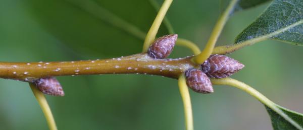 Z dubu se také sbírají duběnky (gallae), což jsou patologické novotvary - tzv. hálky, vyskytující se na listech a větévkách dubů. Jsou způsobené parazitující larvou žlabatky listové (Cynips quercifolii). Dospělí jedinci této žlabatky poletují v květnu až červnu a samičky v této době kladou oplodněná vajíčka zespodu do žilek listů dubu. Larvy, které se vylíhnou, dráždí při svém růstu okolní pletivo, takže se vytvářejí na listech šťavnaté nedřevnatějící útvary hálky ("duběnky") tvaru koule o průměru 26 mm, které hmyz používá jako úkryt i jako potravu. Hálky jsou vždy jednokomůrkové, zpočátku zelené, později žlutě, na osluněné straně červené. Na podzim opadávají s listím. Od prosince do února se z nich líhnou samobřezí samičky, které kladou vajíčka do pupenů dubu, ty pak přetvářejí na hálky o délce až 4 mm, z nichž v květnu se líhnou samečci a samičky.