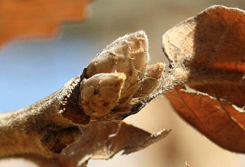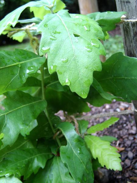 Od předchozího druhu se liší dub zimní označovaný též jako dub drnák (Quercus petraea) /2/ zejména utvářením báze listové čepele. Čepel listu tohoto dubu je k řapíku klínovitě zúžená a má nepříliš hluboce vykrojené, oboustranně téměř symetrické laloky. Duby zimní jsou stejně vzrůstné jako duby letní, jejich koruny jsou však štíhlejší a méně větvené. U nás je rozšířen především v pahorkatinách a v podhorských oblastech (až do 600 – 700 m n.m.). V našem arboretu naleznete kultivar ze skupiny dubů s celokrajnými listy (s listy k oběma koncům přišpičatělými) Q. petraea ´Mespilifolia´/2a/.