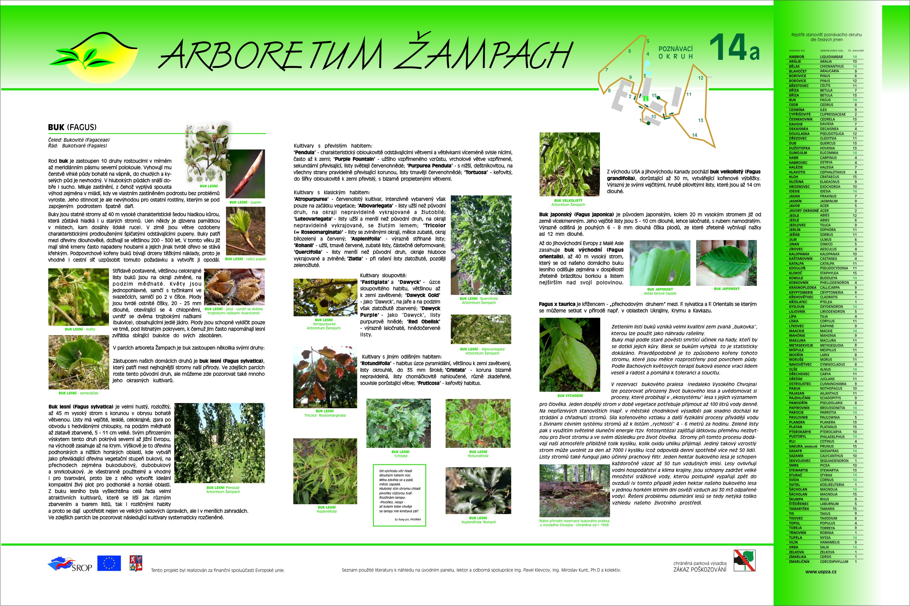 Zástupcem našich domácích druhů je buk lesní (Fagus sylvatica), který patří mezi nejhojnější stromy naší přírody. Ve zdejších parcích roste tento původní druh, ale můžeme zde pozorovat také mnoho jeho okrasných kultivarů.