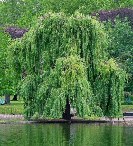 Za jednu z nejkrásnějších vrb lze označit vrbu lesklou (Salix lucida), pocházející ze Severní Ameriky, která ve zdejším parku roste v lokalitě „u rybníčku“. Vytváří většinou keř široce vystoupavého vzrůstu, vzdušně a lehce stavěný, někdy až strom se široce kulovitou korunou o výšce do 5 m. Výrazné jsou jak její 3 – 7 cm dlouhé, zlatožluté jehnědy, které vyrůstají až na olistěných větvičkách, tak celou sezónu její 6 – 14 cm dlouhé, oboustranně lesklé, nápadně špičaté listy. Velmi krásné jsou také převislé větvičky této vrby, které jsou tmavě zbarvené s bílým ojíněním.