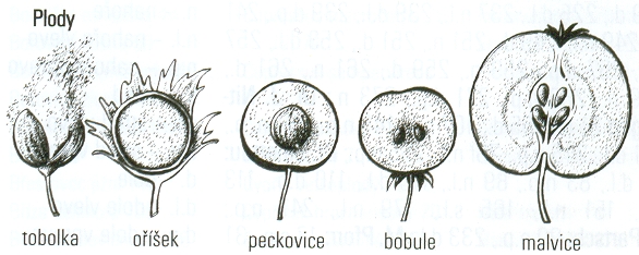 Botanická čeleď růžovité (Rosaceae) obsahuje 100 rodů s 3000 druhy bylin, keřů a stromů produkujících ovoce. Stromy v této čeledi lze rozdělit dle typu plodů do dvou skupin - podčeledí: jabloňovité (Maloideae) - plody vícesemenné malvice (dužnaté plody, vzniklé z plodolistů, uvnitř s několika blanitými pouzdry se semeny) slivoňovité (Prunoideae) - plody jednosemenné peckovice (vrstvy: blanitá povrchová, střední dužnatá, vnitřní tvrdá „kamenná“ = pecka, ta má uvnitř vlastní semeno) /plody schéma - obrázek/