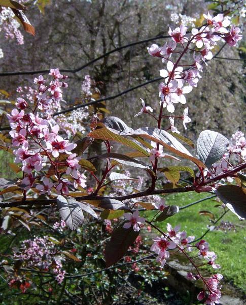 Bobkovišeň lékařská (Laurocerasus officinalis) označovaná také jako střemcha vavřínová (Prunus laurocerasus) pochází z jihovýchodní Evropy a Malé Asie. Jsou to stálezelené keře až nízké stromy (2 – 6 m vysoké) s krásnými eliptickými, až 20 cm dlouhými a 6 cm širokými kožovitými lesklými listy na silných řapících. Vonné květy jsou uspořádány ve vzpřímených, až 12 cm dlouhých hroznech. Plodem je kulovitá peckovice, za zralosti černě zbarvená. Tento druh je velmi přizpůsobivý rozličným klimatickým podmínkám, nenáročný na výživu, snášející přísušek a částečně i znečištěné ovzduší. Je pěstován v nespočetném množství velice rozmanitých kultivarů (odlišných vzrůstem, velikostí, tvarem a zbarvením listů, velikostí květenství). Exempláře pěstované v arboretu byly získány jako výpěstky Arboréta Mlyňany Slovenskej Akadémie Vied. Střemcha obecná (Padus avium označovaná též jako Prunus padus) je přirozeně rozšířena v Evropě a Malé Asii, a to v lužních hájích. Dorůstá rychle výšky 10 – 17 m. Má štíhlou, kuželovitou korunu. Vonné květy jsou po 20 – 40 uspořádány v 7 - 12 cm dlouhých převisajících hroznech. Plodem jsou kulovité peckovice, asi 7 mm velké, černé, lesklé, nahořklé chuti. Z přírodní formy byl vyšlechtěn velice krásný kultivar P. avium ´Colorata´. Listy jsou v době rašení hnědopurpurové, později v plné vegetaci svrchu tmavě zelené a vespod načervenalé. Vonné květy v převislých hroznech jsou zbarveny růžově. Náš exemplář tohoto kultivaru byl dovezen z průhonické botanické zahrady. |