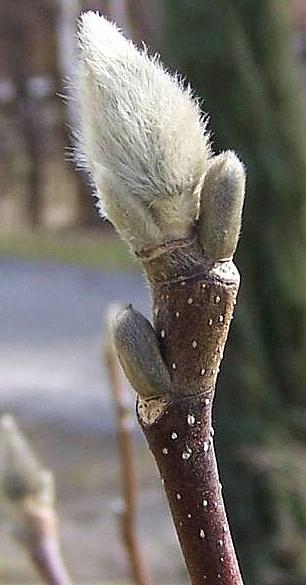 Magnolie Soulangeova (Magnolia x soulangeana) je kříženec rozvětveného habitu, dorůstající 3 – 5 m výšky, většinou až k zemi zavětvený. Ozdobou každého stanoviště jsou zejména jeho až 15 cm velké, vzpřímené květy zvonkovitého tvaru vykvétají na jaře před rašením listů v březnu až květnu, zbarvené uvnitř zpravidla bělavě, zevně světle narůžověle až nafialověle. Při pozdních mrazících mohou být tyto květy poškozeny. Později jsou ozdobou též šišticovitá souplodí, obsahující oranžová semena. Tyto kontrastují na podkladu kožovitých, až 20 cm dlouhých listů. Dalším druhem u nás zastoupeným je magnolie hvězdokvětá (Magnolia stellata), původem ze středního Japonska. Jedná se o pomalu rostoucí, polokulovitý, rozložitý keř bez význačnějšího kmínku, většinou zavětvený k zemi, který je až 3 m vysoký a 2 m široký. Tento druh kvete mimořádně bohatě v měsíci březnu až dubnu bílými, menšími (8 – 10 cm širokými) hvězdicovitě se otvírajícími, vonnými květy, složenými z 12 – 18 úzkých okvětních lístků. Šišticové souplodí je do 5 cm dlouhé, listy podlouhle vejčité, 4 - 14 cm dlouhé, s okraji většinou zvlněnými. * po olistění vykvétá: