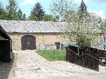 Prostorná stodola byla součástí zámeckého hospodářství manželů Anny Gustavy a Františka Lützowových na Žampachu (1884 – 1932). Je vystavěna z pískovcového kamene pocházejícího ze zdí zpustlého hradu na vedlejším homolovitém návrší (nyní jsou zbytky gotického hradu z přelomu 13. a 14. století po provedeném archeologickém průzkumu zakonzervovány a chráněny jako kulturní památka).
