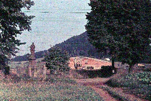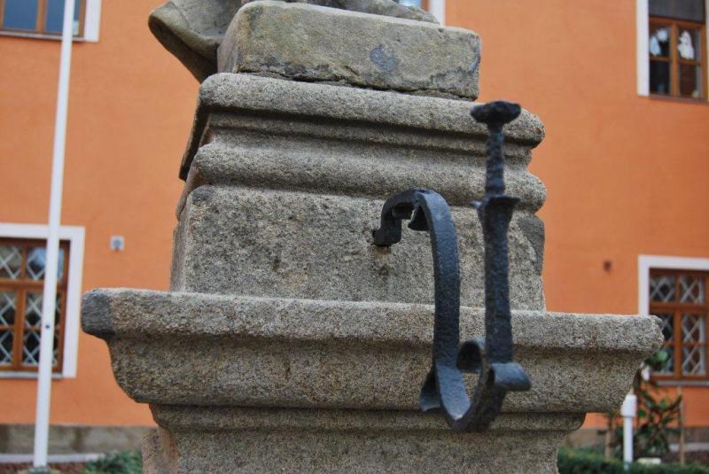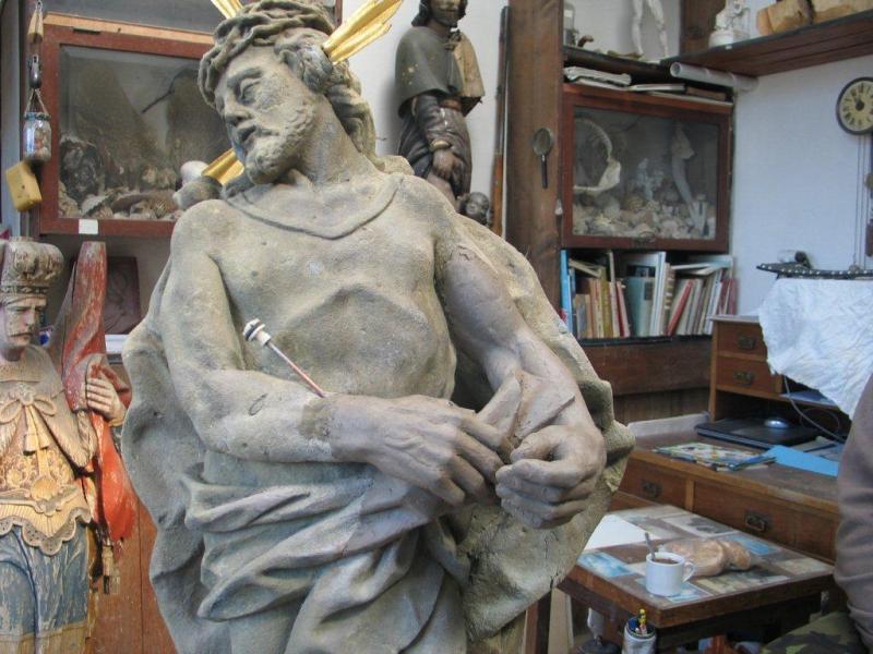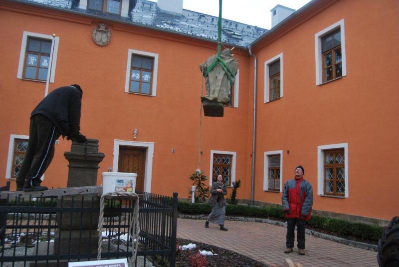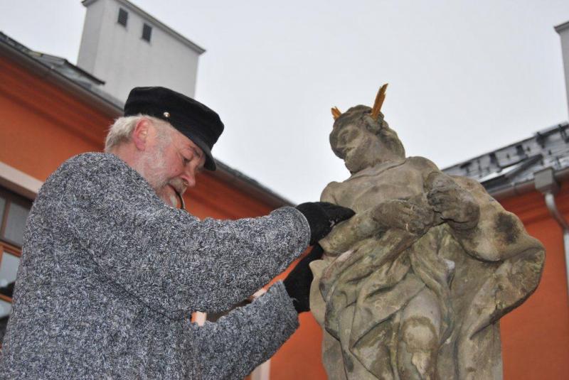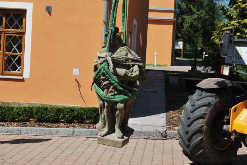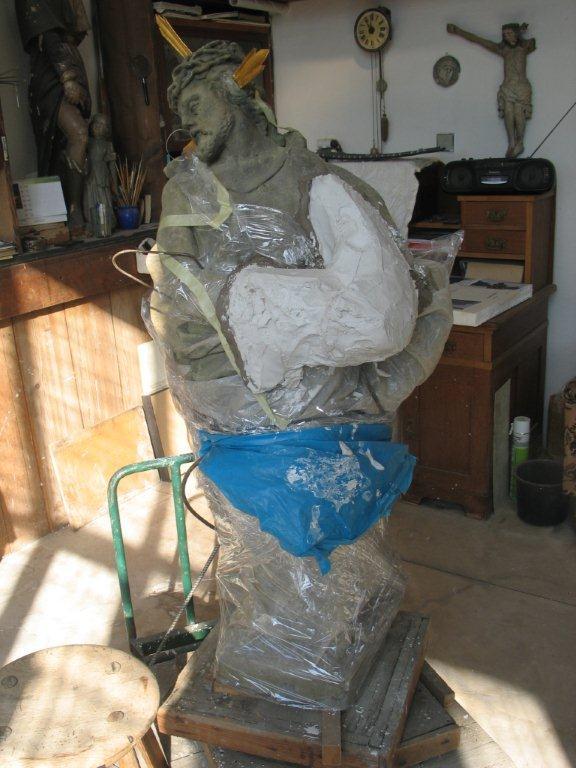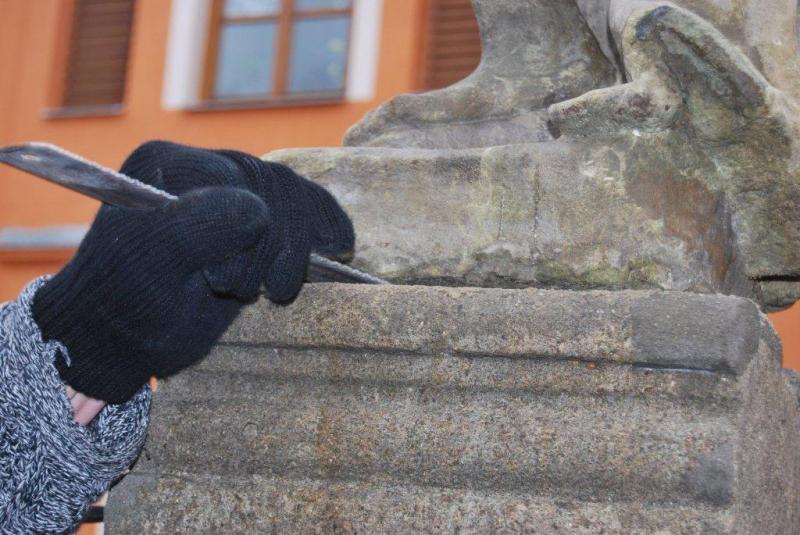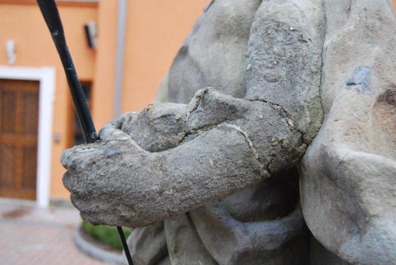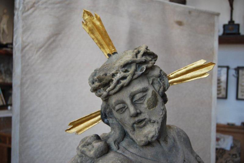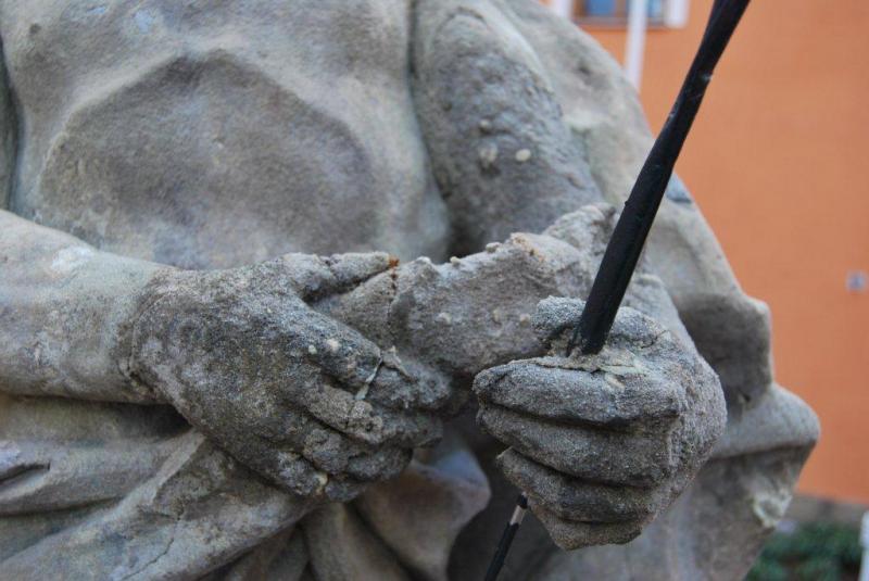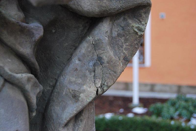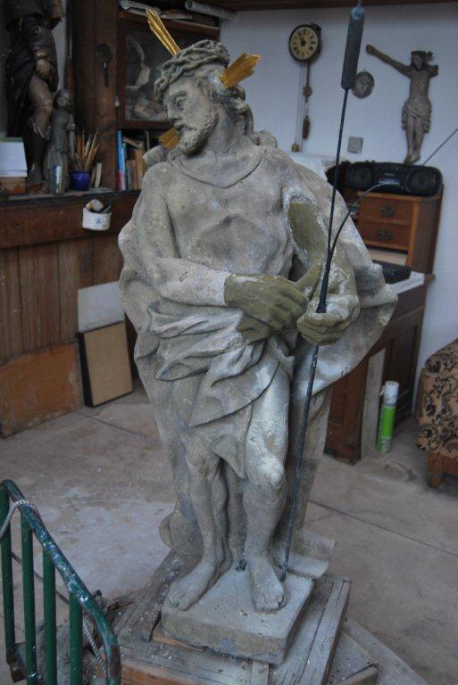 Socha na původní stanovišti, v roce 1959 (foto archiv) Z dokumentace restaurátorských prací 2011 - 2012: