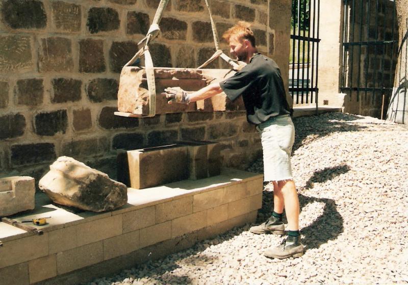 | Archiv - lapidárium nálezů z hradu Žampach, pískovcová branka - restaurátorské práce | |
