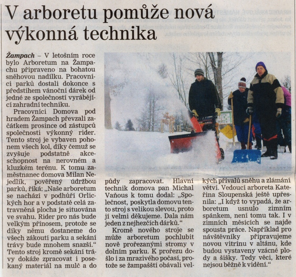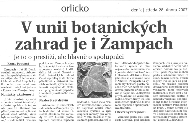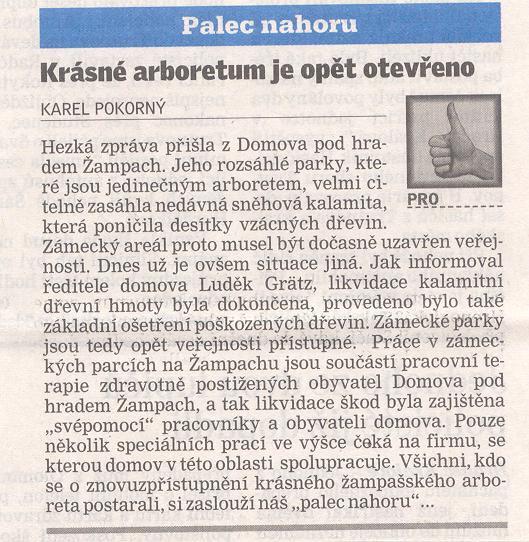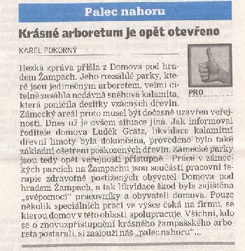 Archiv - články - výstřižky - Domov pod hradem Žampach Hlavní článek Arboretum Žampach: http://www.uspza.cz/arboretum 2025 březen 2025