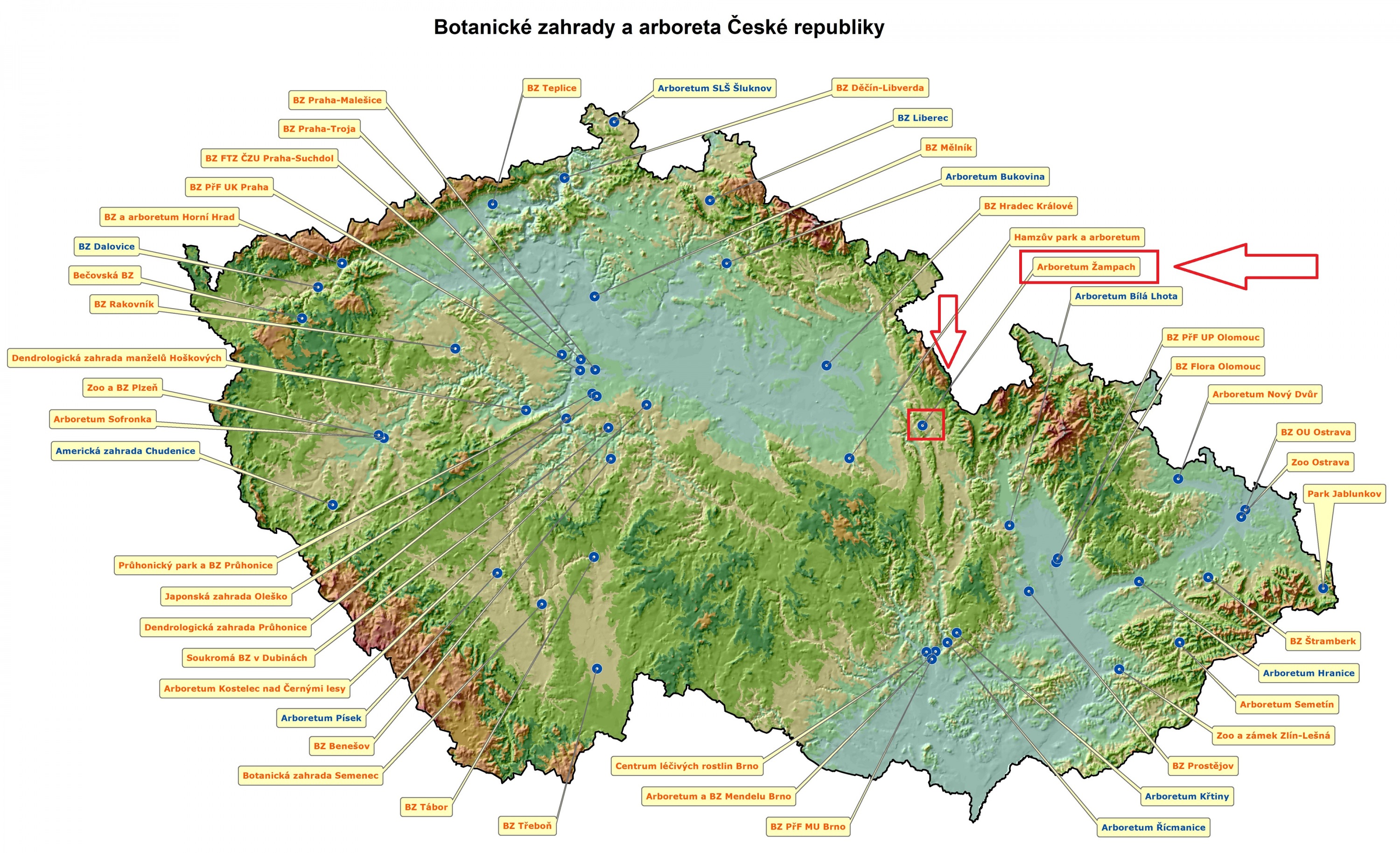 Arboretum Žampach bylo zahrnuto do mapy a průvodce po botanických zahradách a arboretech České republiky