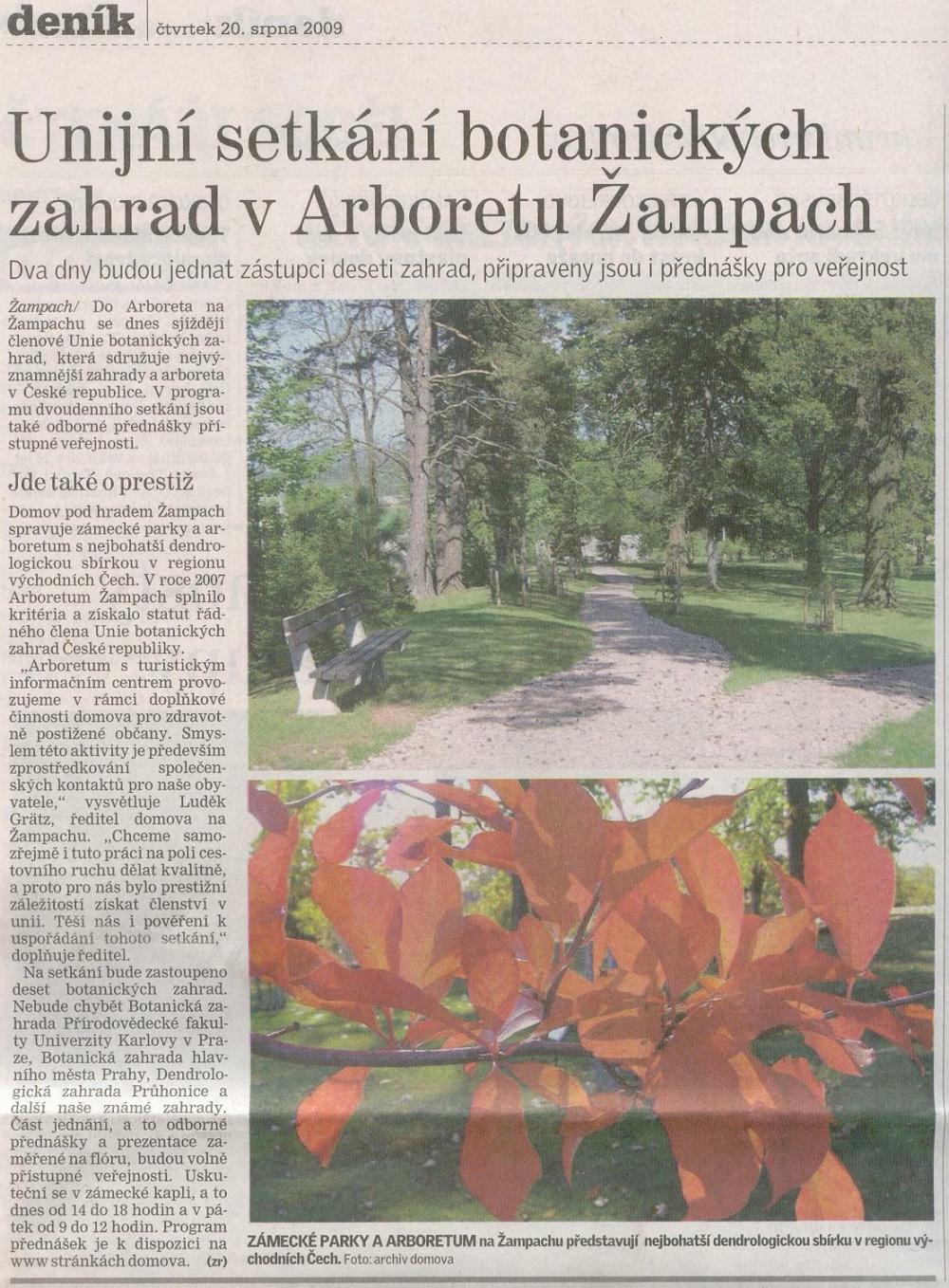 ZVUKOVÝ ZÁZNAM: Český rozhlas Pardubice - 3.10.2010 03:47 2,6 MB Reportáž Českého rozhlasu - Arboretum Žampach ZVUKOVÝ ZÁZNAM: Český rozhlas Pardubice - 1.06.2010 06:06 4,2 MB Návštěva arboreta účastníky