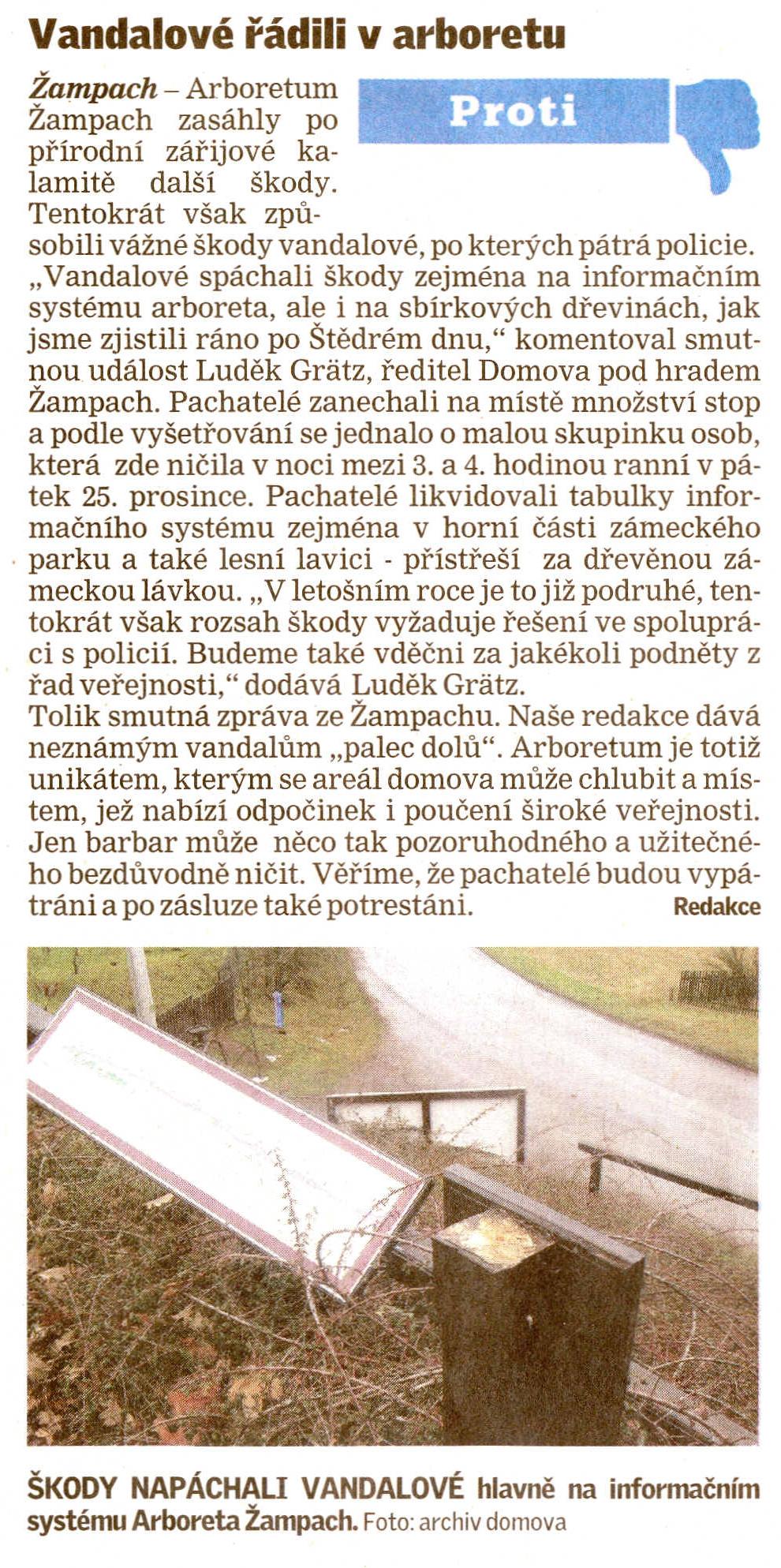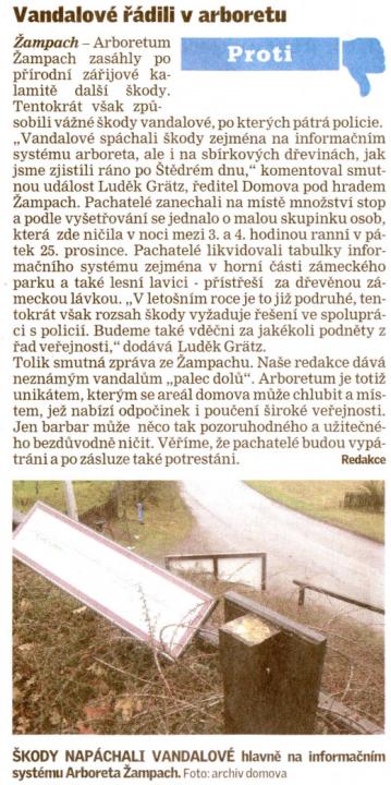 Rok 2009 Vandalismus dne 25.12.2009 - článek na www deníku