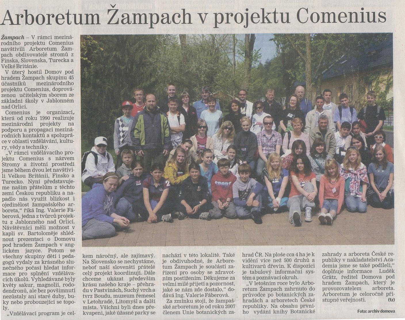 Stromy a životní prostředí, skupina 45 lidí z Finska, Slovenska, Turecka a Velké Británie, 11.05.2010 tisková zpráva - na www deníku