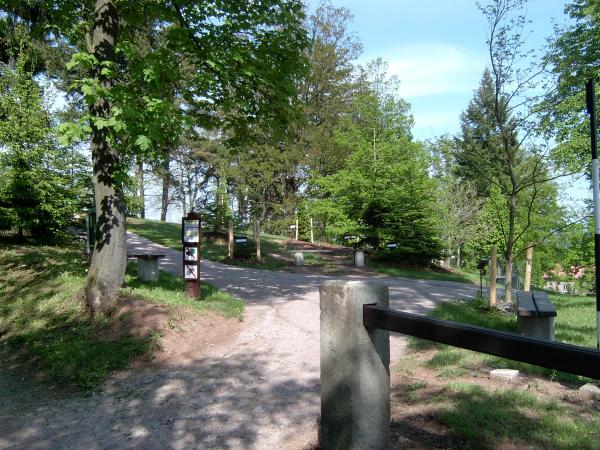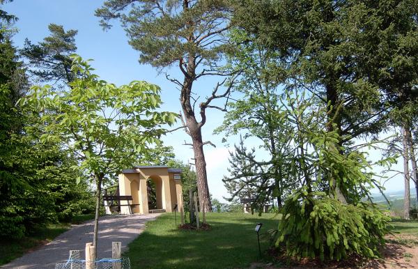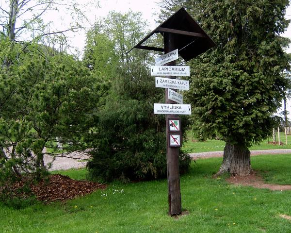Horní část arborata - rozcestník se základní orientací v areálu |