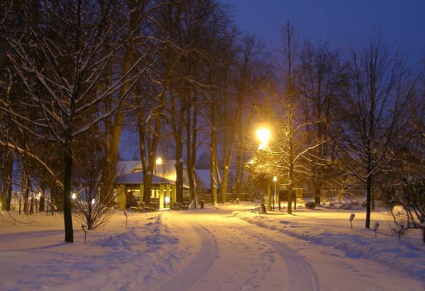 vnitřní část arboreta se zahrdním altánem - v noci |