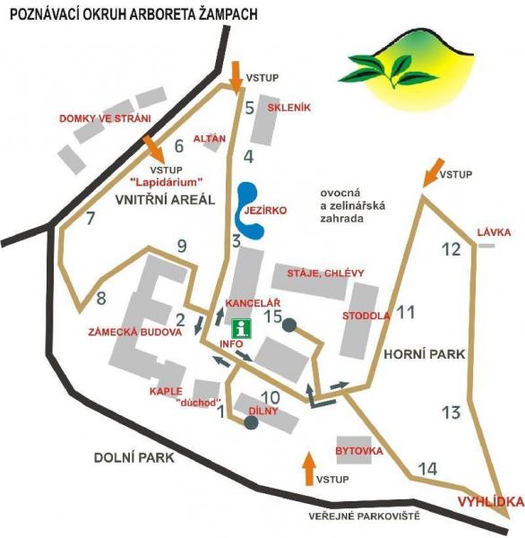 Trasa poznávacího okruhu provází návštěvníky jednotlivými skupinami dřevin, kterým jsou věnovány informace na tabulích a je zakončena v místě Turistického informačního centra Žampach.