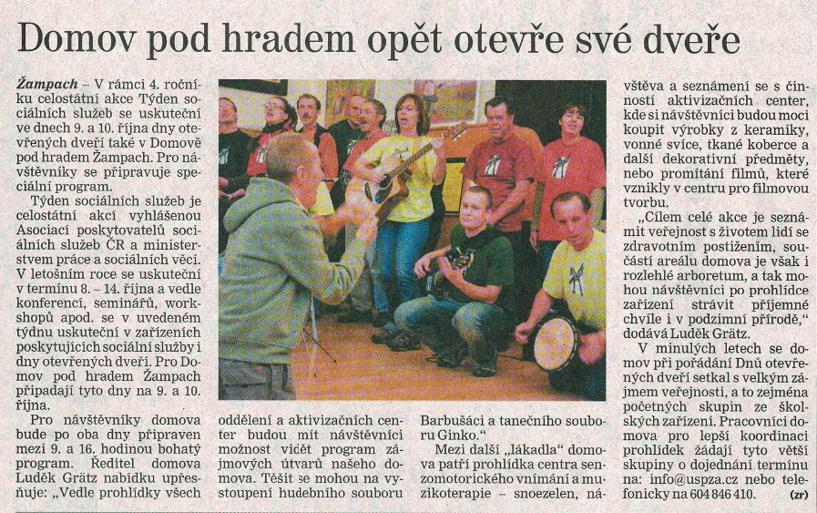 DNY OTEVŘENÝCH DVEŘÍ v Domovu pod hradem Žampach v rámci TÝDNE SOCIÁLNÍCH SLUŽEB ČR 9.-10.10.2012