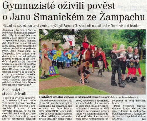 O SPOLUPRÁCI SE STUDENTY GYMNÁZIA ŽAMBERK - filmování scén z pověsti