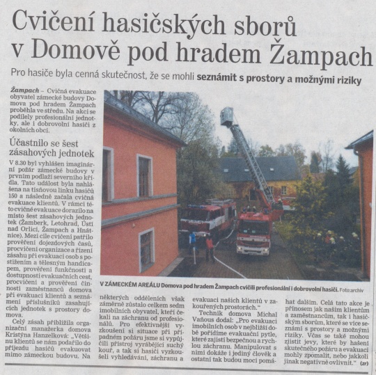 Námětové cvičení hasičských sborů v domovu - Cvičná evakuace 31.10.2012