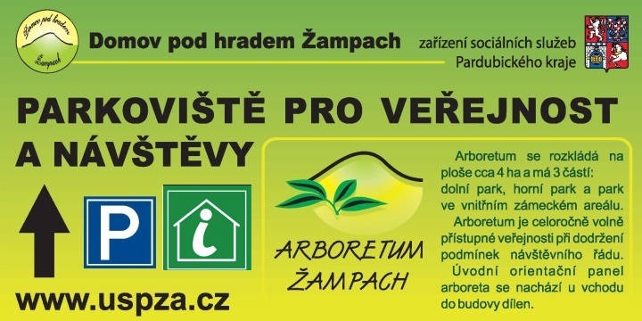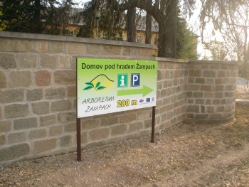 Na základních přístupových směrech k Arboretu Žampach je provedeno směrové značení, včetně přístupu k parkovacím plochám na Žampachu. Bezplatné parkoviště se nachází naproti dolního vstupu do zámeckého areálu areálu. ![]() Veřejné bezplatné parkoviště u zámeckého areálu pro autobusy a osobní vozidla naproti vstupu do zámeckého areálu.