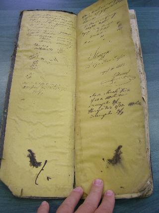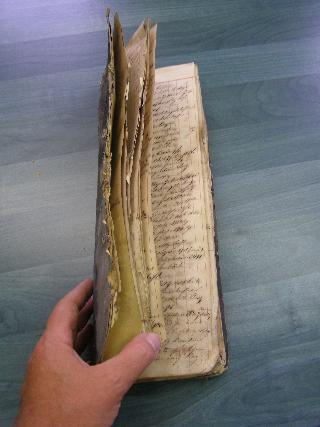 | Výběr z archivních nálezů během stavby: účetní kniha z r.1883 | |
