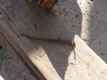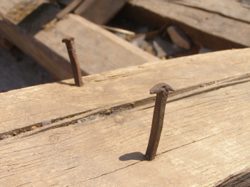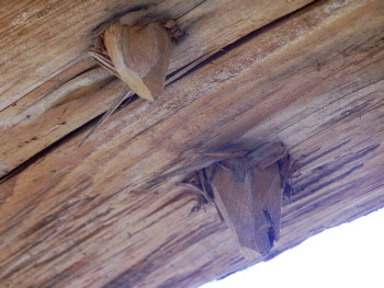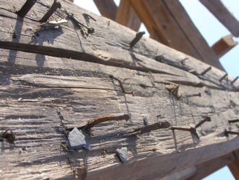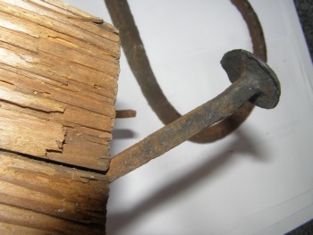 5 hřebíky šindelové 6 tesaný trám se šindelovými hřebíky