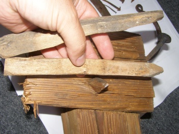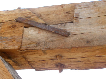9 nastavení vaznice 10 kovaný hřebík (podlažní ?) 11 detail tesařského spoje