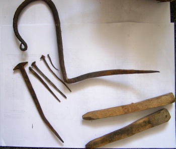 | Výběr z archivních nálezů během stavby: kování a spojovací prvky | |