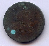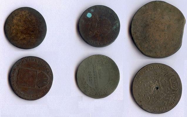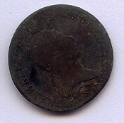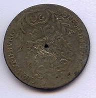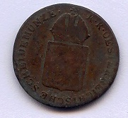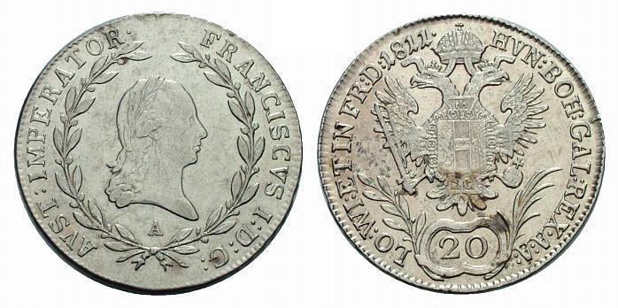 měď, pr. 32-33 mm skrojený okraj, oba líce prakticky nečitelné A: snad obrys busty 2/ stříbro, pr. 29 mm, ve středu otvor pr. 1 mm A: téměř nečitelný, vavřínové snítky po obvodu, opis: --- BO --- B: orel s hlavami ve svatozáři a korunou na krku, žezlem a jablkem v pařátech, pod ním ovál s hodnotou, z oválu vyrůstají dvě vavřínové snítky, opis: LOTH M D HET 1787 --- ARCH AVST D BVRG / 20 20 krejcarů, císařství rakouské, 1787